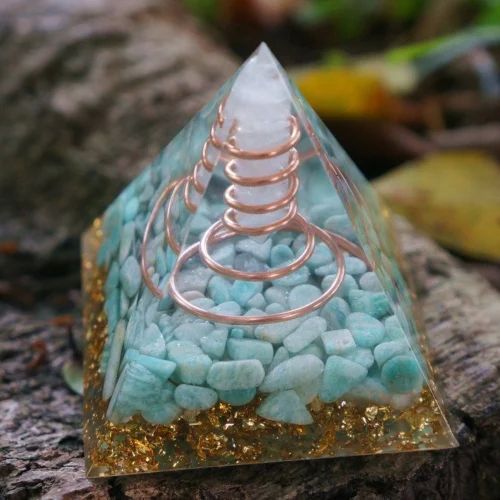 We are a leading Manufacturer, Exporter, and Supplier of high-quality Blue Orgonite Pyramids sourced from India. Our polished 100g pyramid is expertly crafted for energy balancing and healing purposes. The vibrant blue color adds a calming touch to any space. Harness the power of orgonite with this pyramid shape, designed to enhance positive energy flow. Elevate your spiritual practice with this unique piece that combines beauty and functionality. Experience the benefits of orgonite in a stylish and effective way with our Blue Orgonite Pyramid.